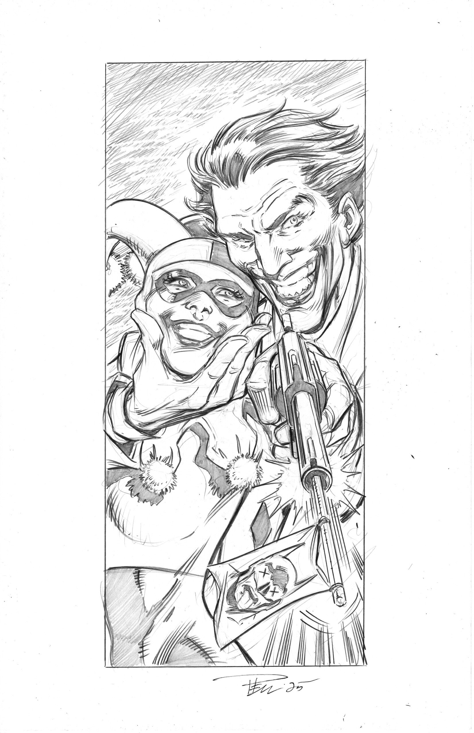Sketch Pin-Up, Harley and Joker. Pencils. 11″ x 17″