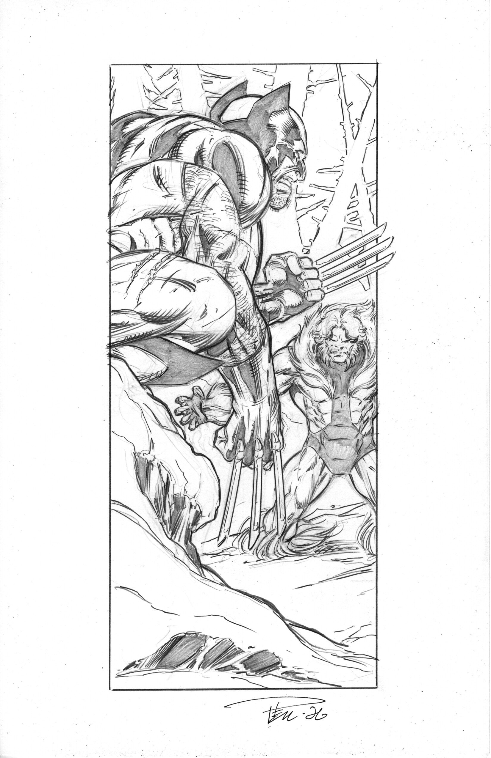 Sketch Pin-Up, Wolverine and Sabretooth. Pencils. 11″ x 17″